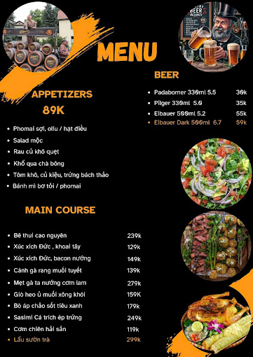 Ẩm thực & Bia Đức: Sự hòa quyện giữa ẩm thực truyền thống Việt Nam, đồ ăn nhẹ Âu – Á và hương vị bia Đức chất lượng.
