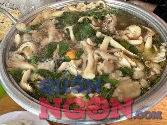 Lẩu gà lá é (200.000 – 300.000 VNĐ/nồi): Món “best-seller” của quán. Nước dùng trong, ngọt thanh từ gà ta hầm kỹ, kết hợp cùng lá é thơm mát và ớt xanh cay nồng. Khi thưởng thức, vị ngọt béo của thịt gà hòa quyện cùng vị the của lá é tạo nên sự cân bằng hoàn hảo, vừa ấm bụng vừa gây nghiện.
