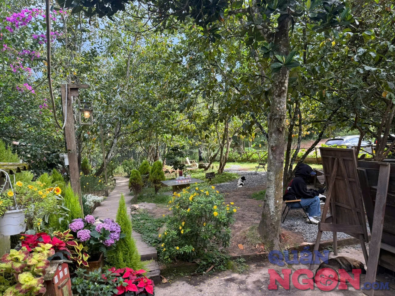 Quán có nhiều góc “sống ảo” siêu đẹp: chiếc cầu gỗ nhỏ bắc ngang qua suối, bàn ghế mộc mạc ngay sát mép nước, hay mái hiên gỗ nhìn ra vườn hoa. Mỗi góc đều rất nên thơ, chỉ cần đưa máy lên là có ảnh đẹp mang về.