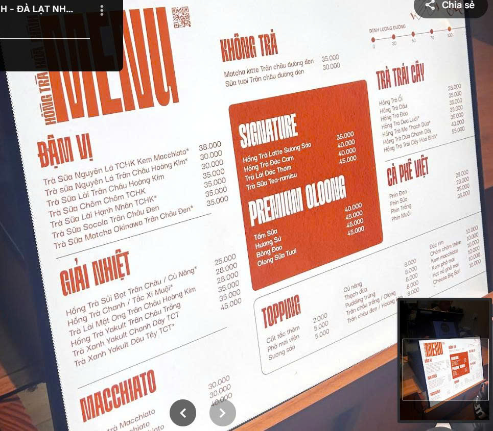 Hình thức phục vụ: Dùng tại chỗ, Mang đi, Giao hàng