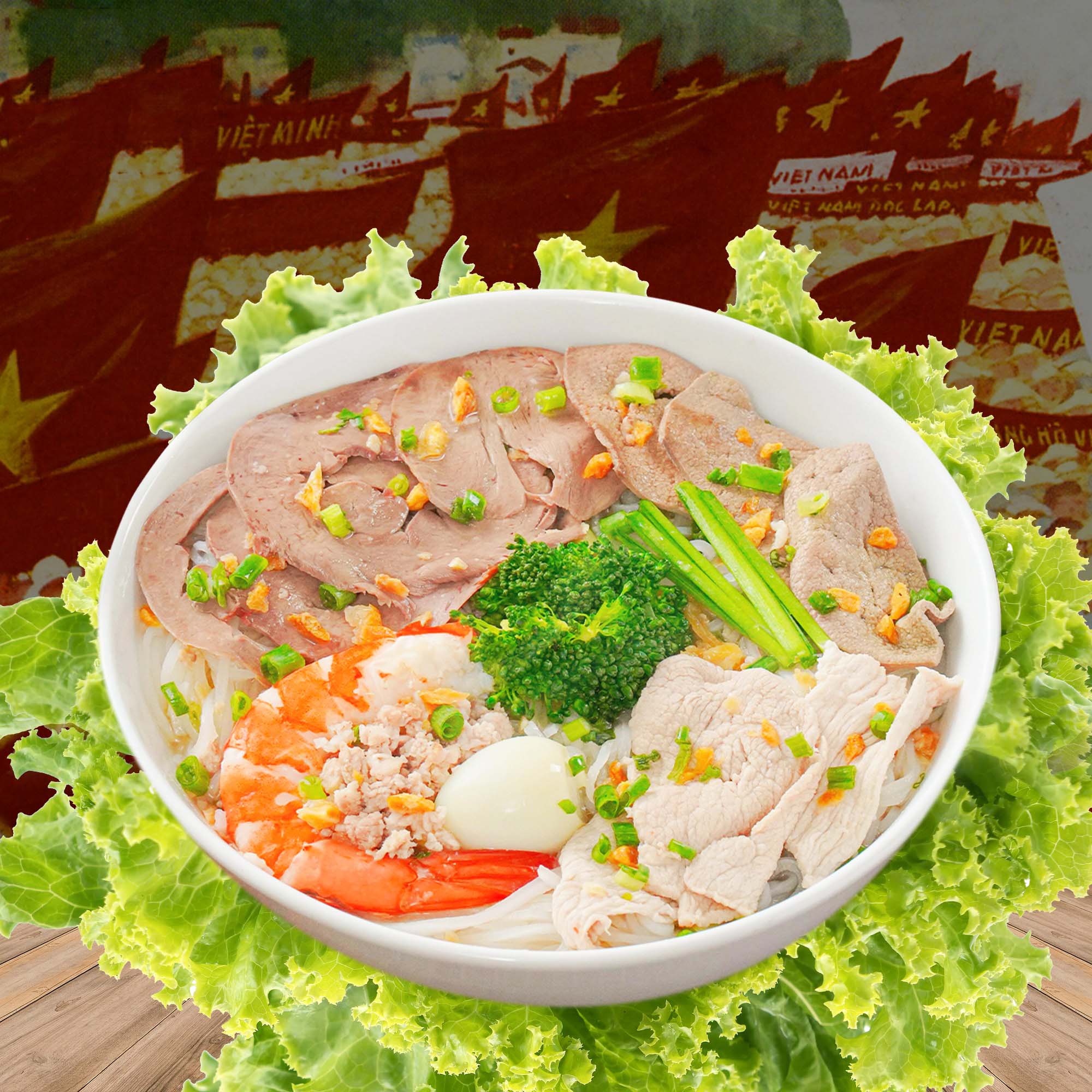 Nước dùng thanh, topping đa dạng như tôm, thịt, trứng cút… phù hợp cho bữa sáng hoặc ăn nhẹ.